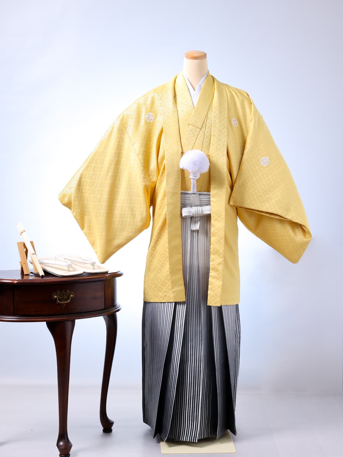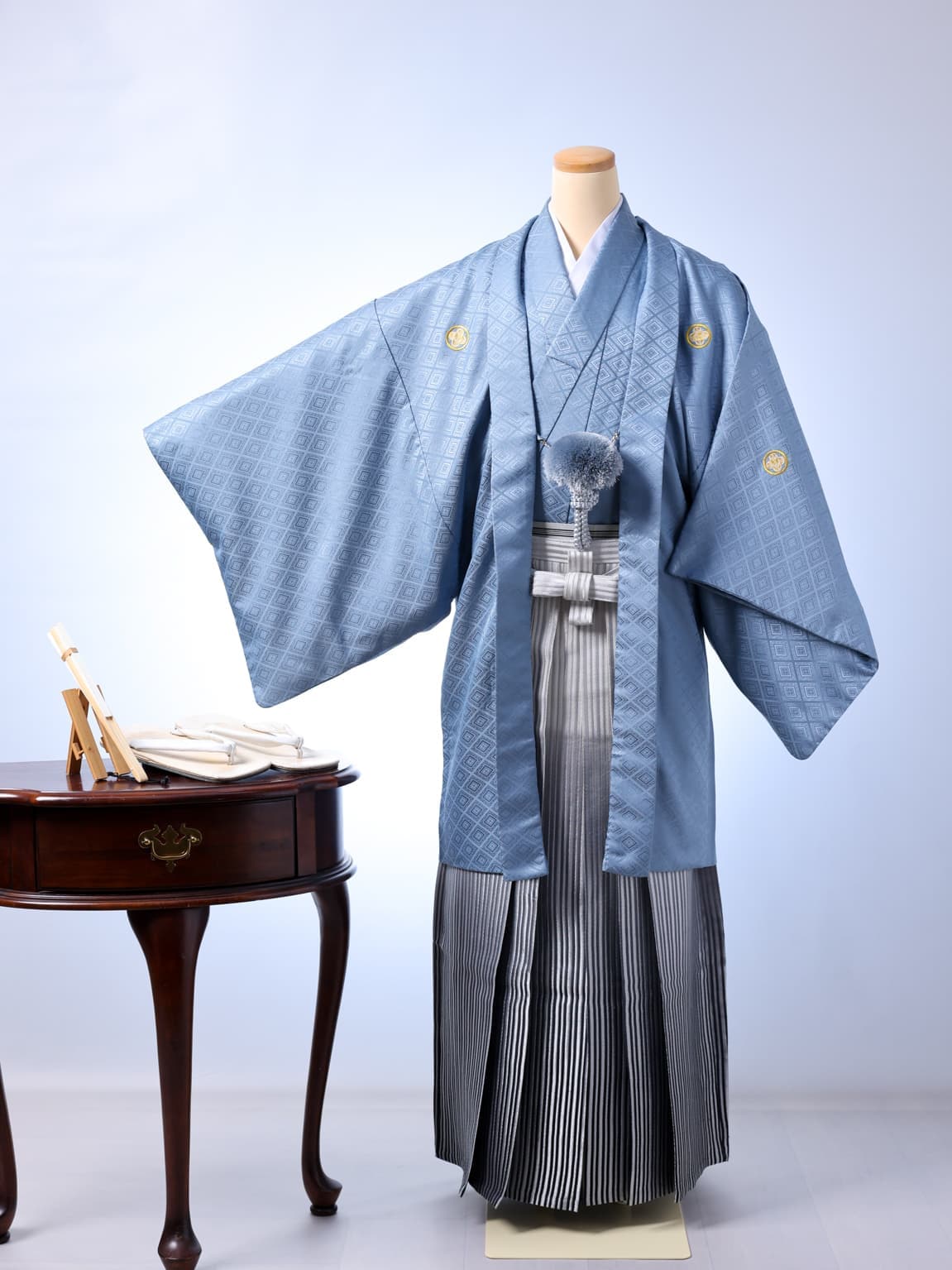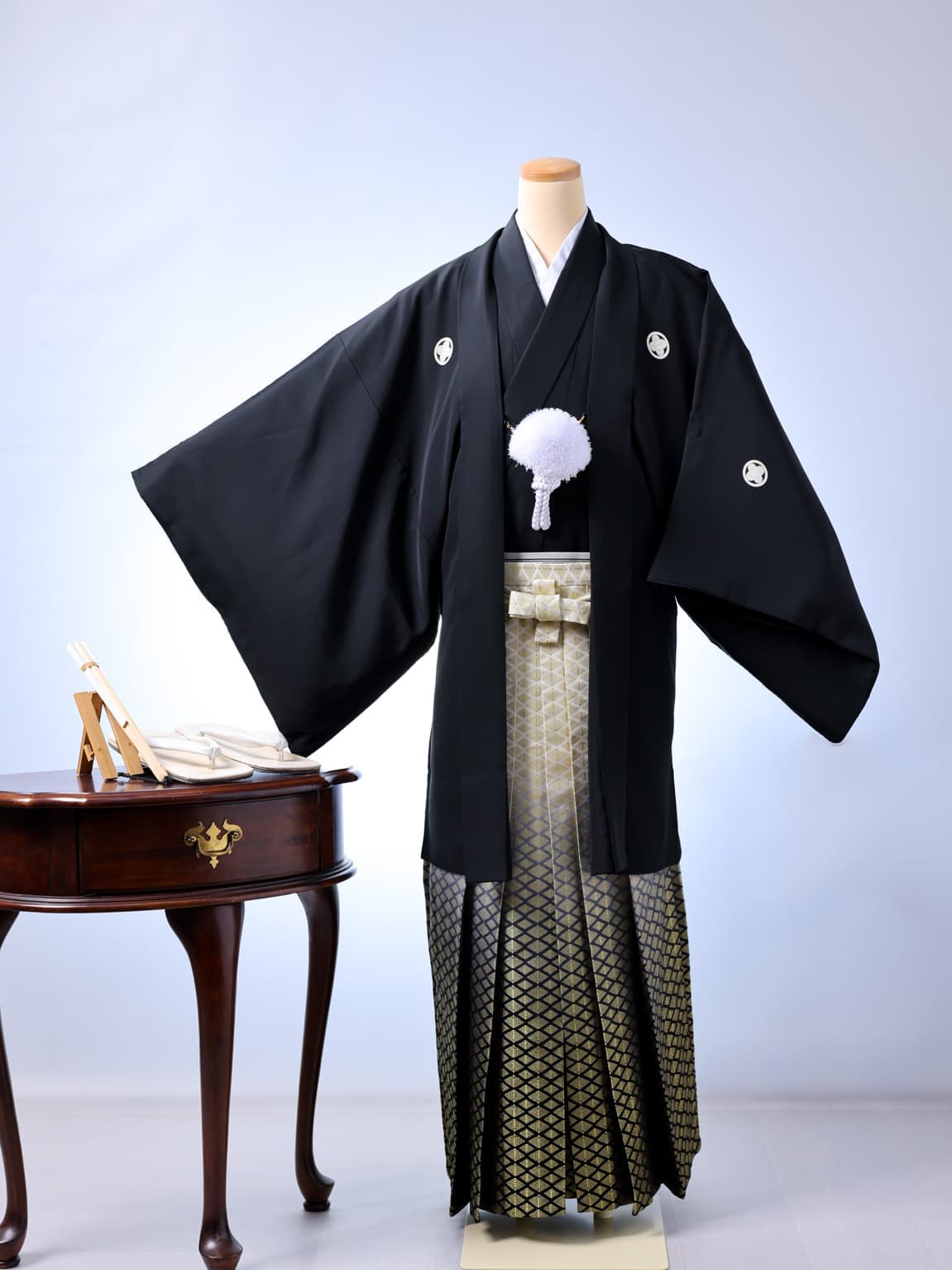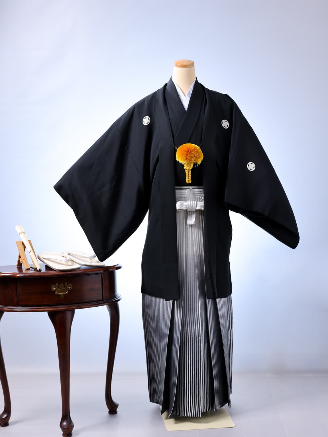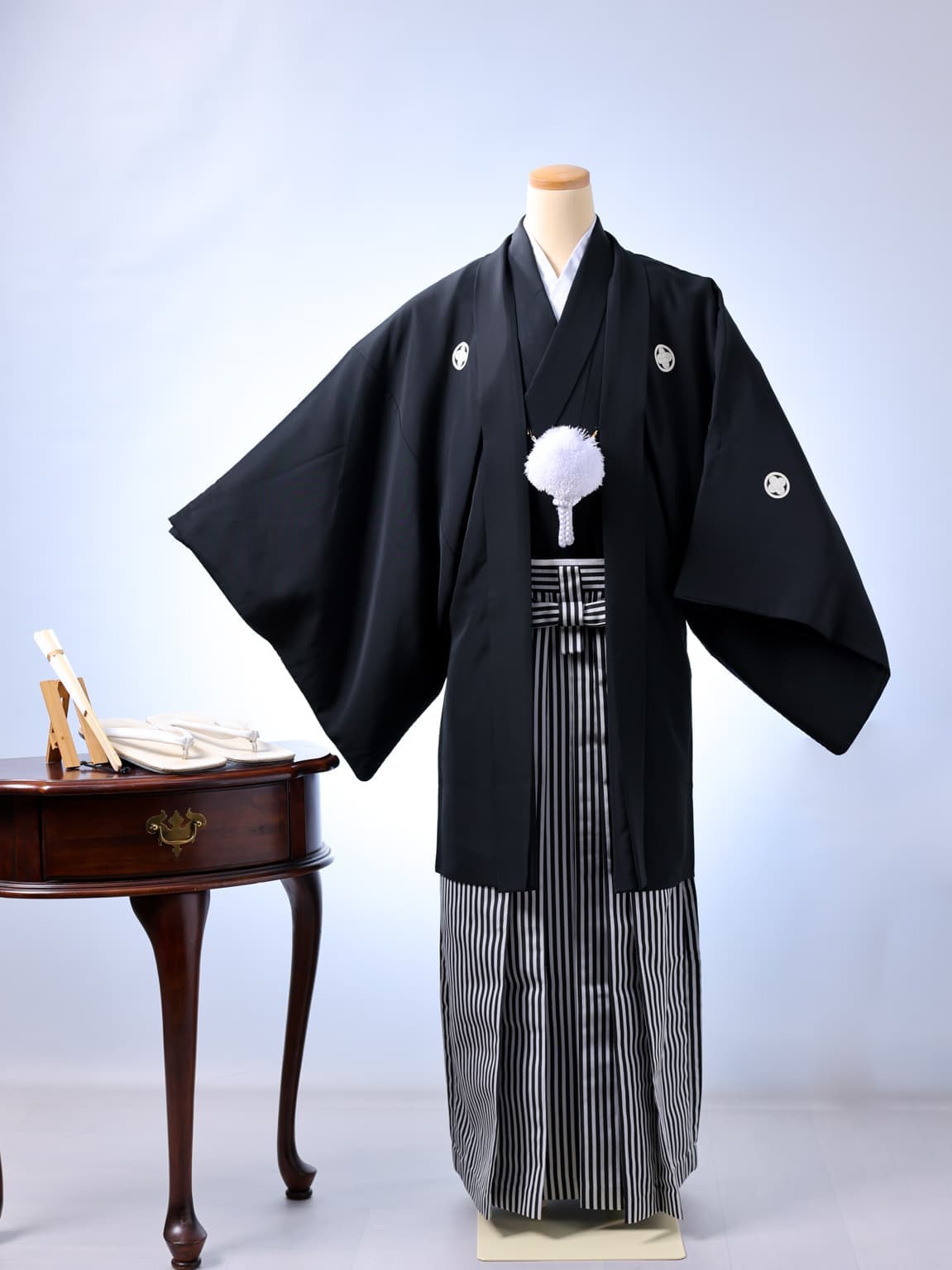 スタジオ保有の紋付袴。成人式も、パパも写真は着物で。
