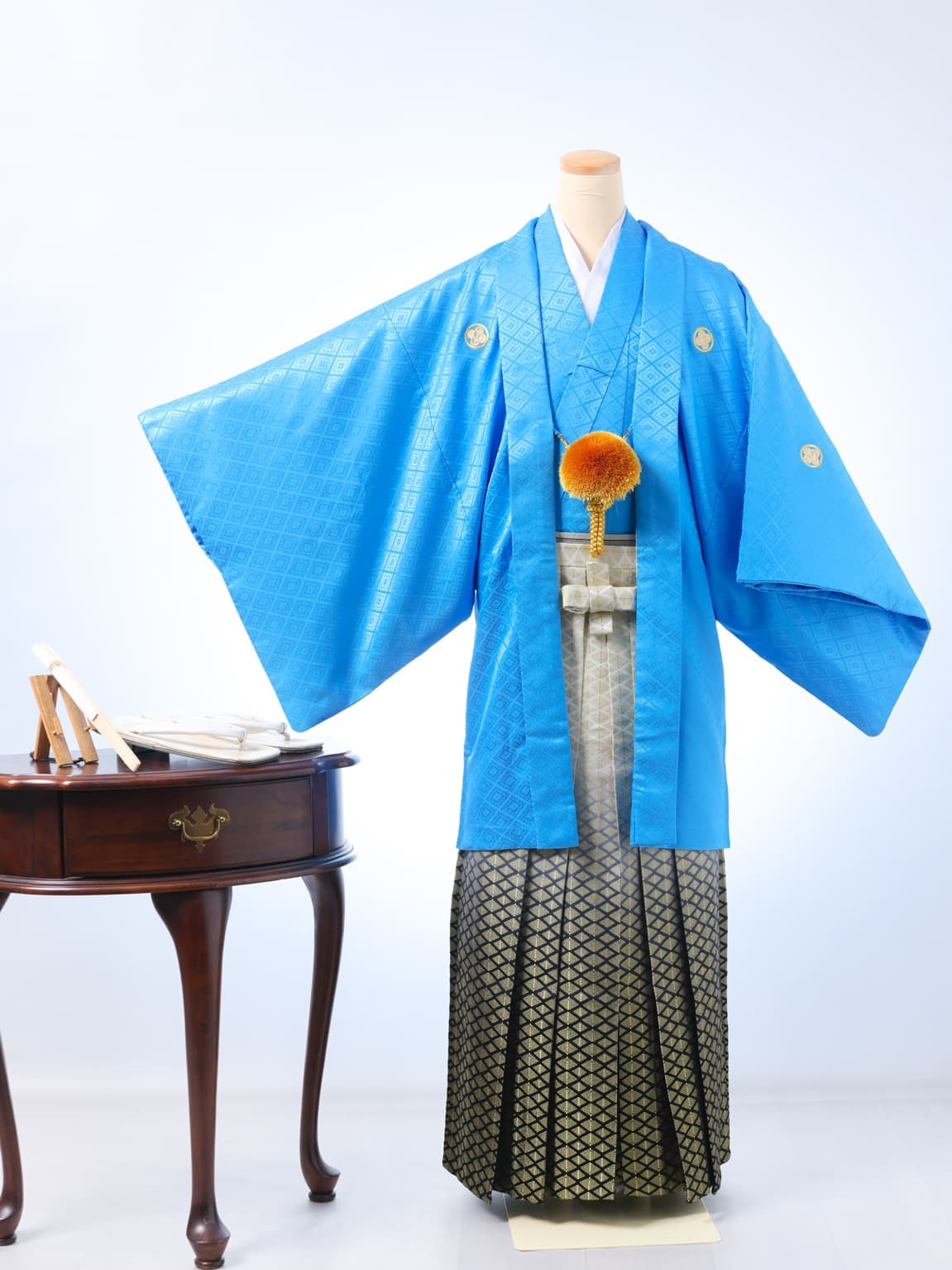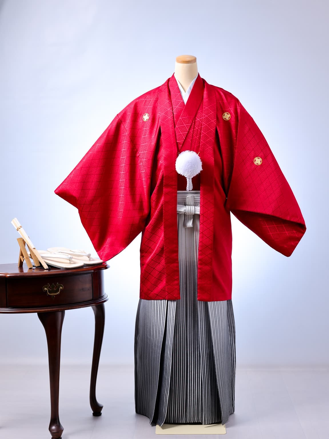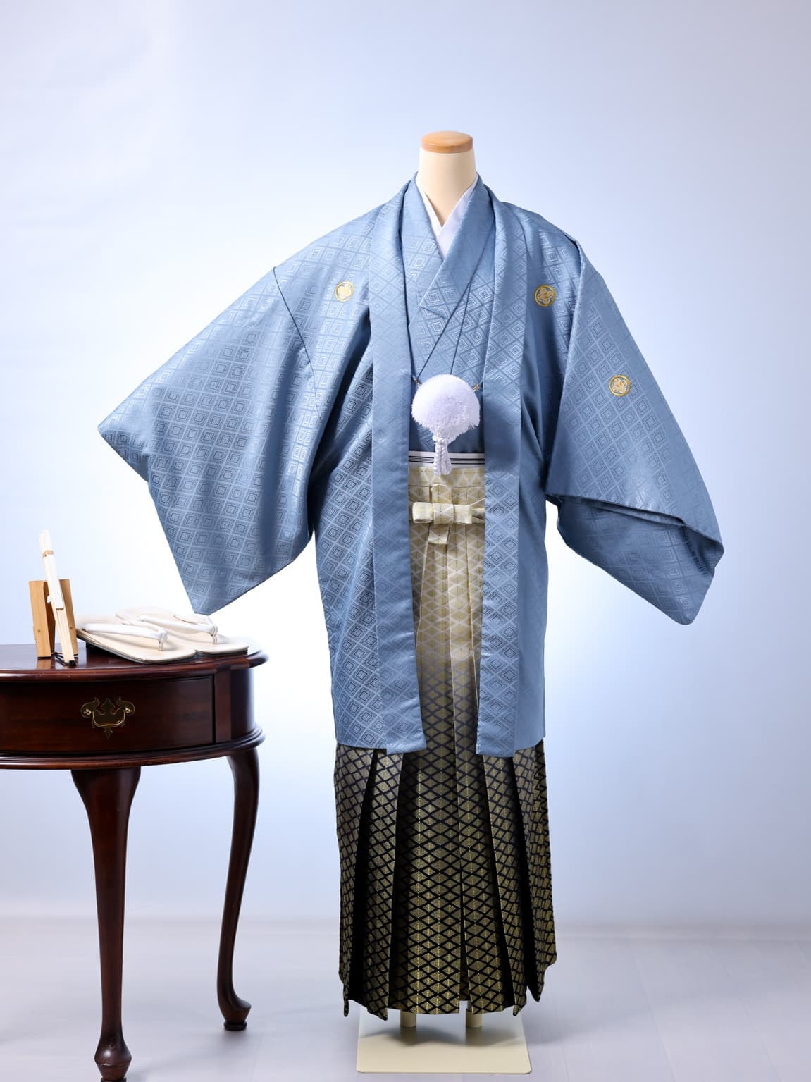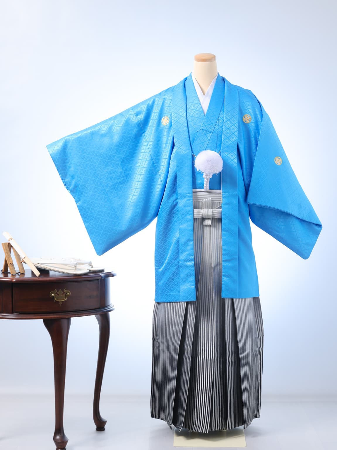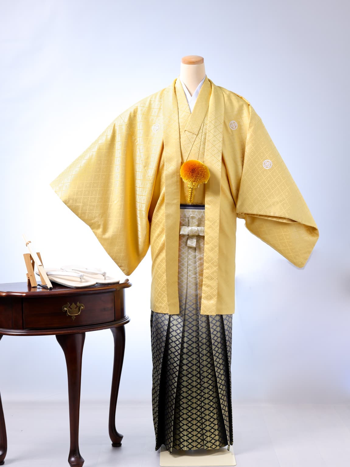 スタジオ保有の紋付袴。成人式も、パパも写真は着物で。